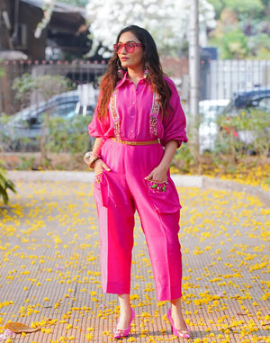 Bold, yet breezy. This Silk Set combines an easy-fit embellished tunic with roomy, relaxed pants. Thoughtful detailing on the pockets adds dimension to a silhouette that’s as chic as it is comfortable. Your go-to for standout, no-fuss style.
