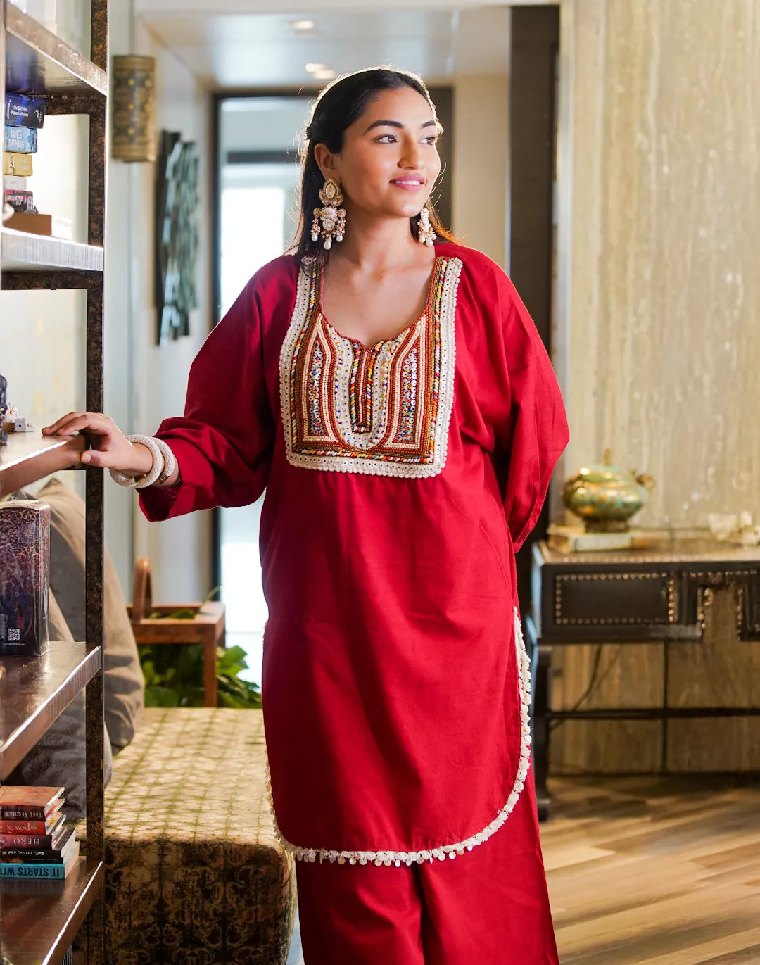 Playful yet poised, this Malai Cotton Cord Set is your sunshine-ready staple. With delicate shell lace trimming and a soft yoke detail, it adds just the right touch of charm. The polka dot pants inject a burst of personality—perfect for those lighthearted days when comfort and style go hand in hand.